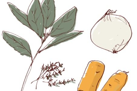 Place a layer of onions on the bottom of a heavy casserole, then some carrots / parsnips, then place the meat on top. Sprinkle chopped thyme and parsley generously, season well. Layer with the rest of the onions and carrots / parsnips with the potatoes. Sprinkle thyme and parsley again on top.